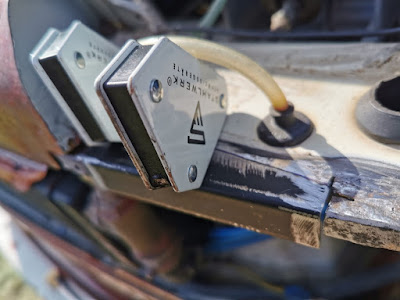 Der Anpassungsprozess ist noch im Gange. Die A-Säule Fahrerseite wurde vom Vorbesitzer (der 1. Besitzer) bereits getauscht. Schwierigkeiten könnten beim verschweißen des obereren Bleches auftreten, hier ist nicht klar, ob es so einfach mit dem WIG-Gerät verschweißt werden kann.